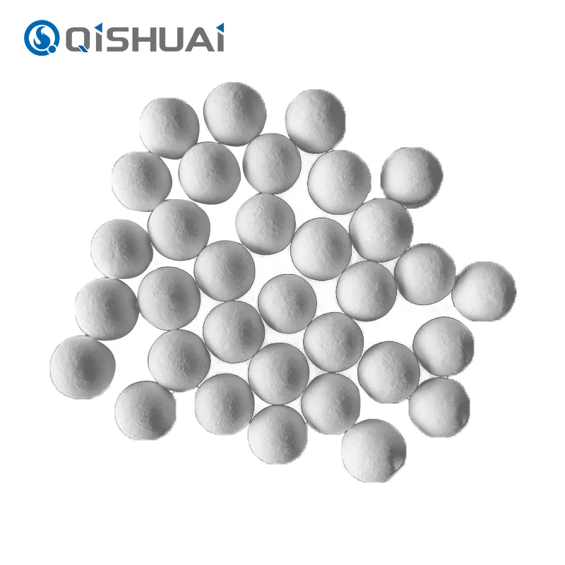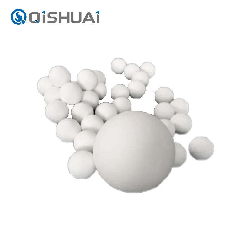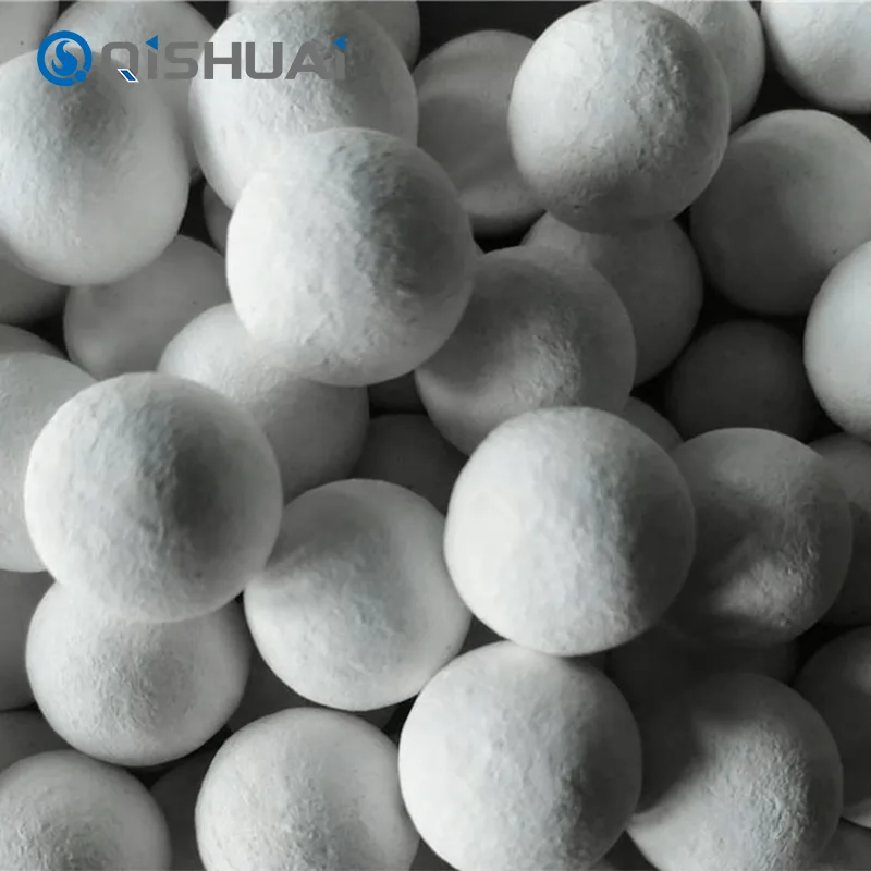 Οι μπάλες αλουμίνας υψηλής ποιότητας που παράγονται από την Shandong Qishuai, έχουν όλες πολύ υψηλή σκληρότητα, πολύ καλή χημική σταθερότητα και υψηλή αντοχή στη θερμότητα (1600°C). Διατίθενται διάφορες προδιαγραφές με μέγεθος σωματιδίων που κυμαίνεται από 0,5 mm έως 10 mm. Οι κύριες εφαρμογές περιλαμβάνουν λείανση και στίλβωση, φορέας καταλύτη, προσροφητικό, πυρίμαχο υλικό υψηλής θερμοκρασίας κ.λπ.