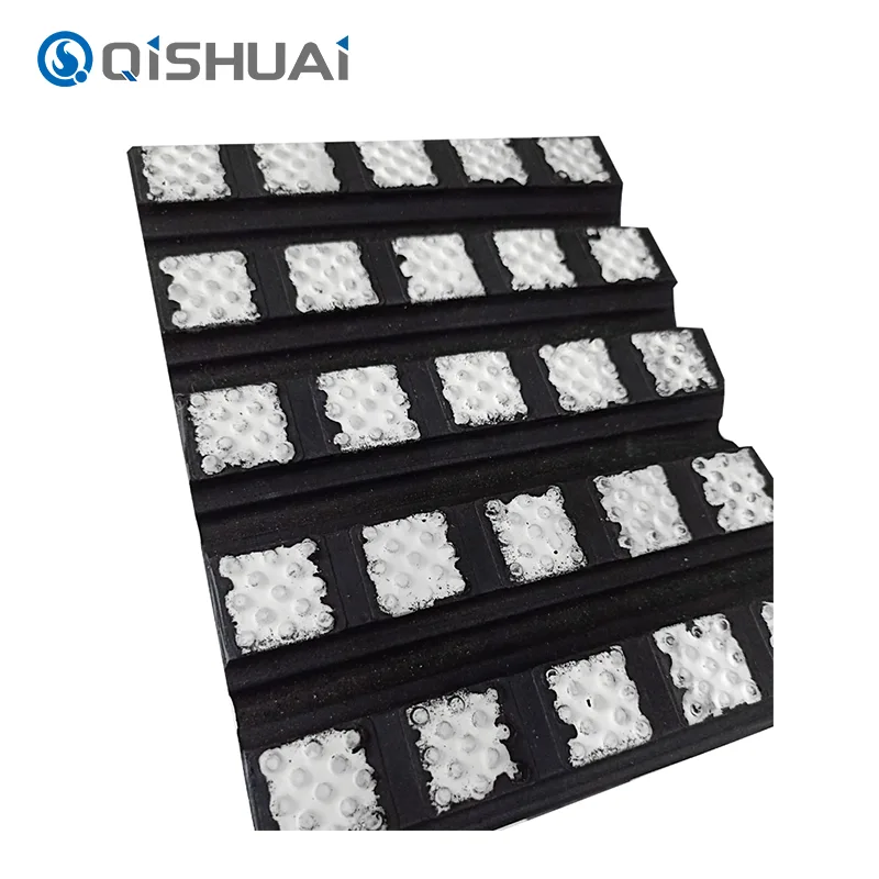 Η ολίσθηση είναι ένα ενοχλητικό ζήτημα κατά τη μεταφορά υλικών. Όχι μόνο μειώνει την απόδοση της μετάδοσης, αλλά μπορεί επίσης να οδηγήσει σε συσσώρευση υλικού, αστοχία εξοπλισμού και μια σειρά άλλων προβλημάτων. Το προϊόν μας από την Shandong Qishuai Wear-Resistant Equipment Co., Ltd. λύνει τέλεια αυτό το πρόβλημα μέσω του μοναδικού σχεδιασμού της επιφάνειας του. Τα κεραμικά σωματίδια βρίσκονται τυχαία στην επιφάνεια και υπάρχουν αμέτρητα μικρά σωματίδια για να ενισχύσουν την τριβή με τα υλικά.