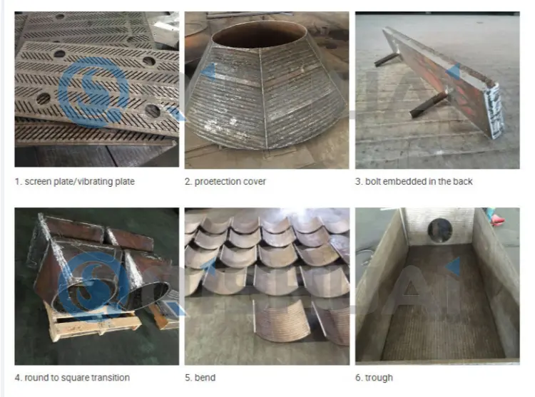 - Κύριοι άξονες θραυστήρα μονού κυλίνδρου Άξονες θραυστήρα μονού κυλίνδρου, συγκόλληση επικάλυψης επισκευής πλακών, αγωγοί σκωρίας, δίσκοι διανομής, δονούμενες επενδύσεις τροφοδοσίας, δονούμενες επενδύσεις οθόνης, χοάνες μεταλλεύματος, λεπίδες χοάνης και εξαρτήματα ανθεκτικά στη φθορά για τη μεταφορά σκωρίας νερού. Αντέχουν αποτελεσματικά στην τριβή από σκωρίες, μεταλλεύματα και άλλα υλικά υψηλής θερμοκρασίας, μειώνοντας το χρόνο διακοπής λειτουργίας του εξοπλισμού χαλυβουργίας και διασφαλίζοντας σταθερές λειτουργίες παραγωγής.